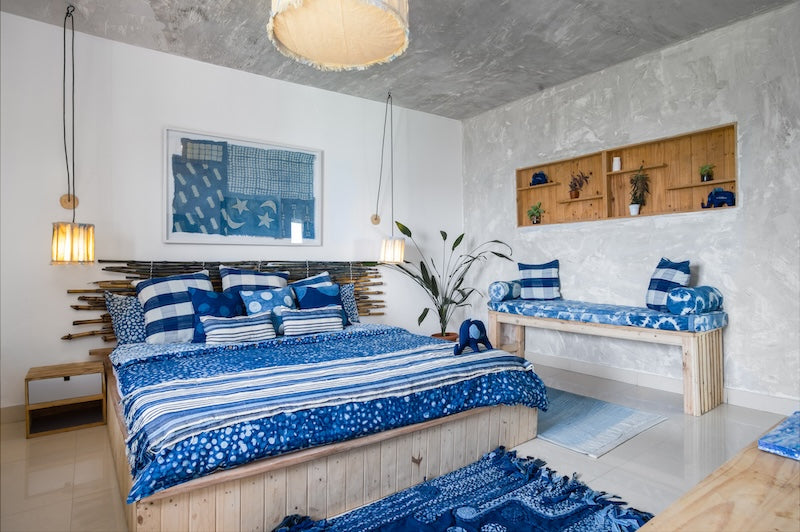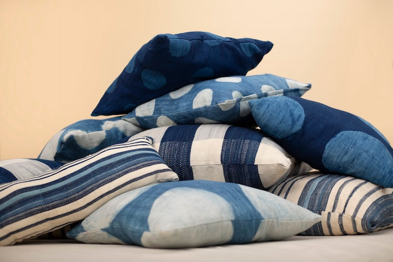 Add a touch of artisanal charm to your living space with our handwoven checkered and indigo striped cushions, meticulously crafted by master weavers in Maitsidau village. Each cushion features 100% cotton yarns, hand-dyed with precision at the historic Kofar Mata dye pit in Kano state, Nigeria.