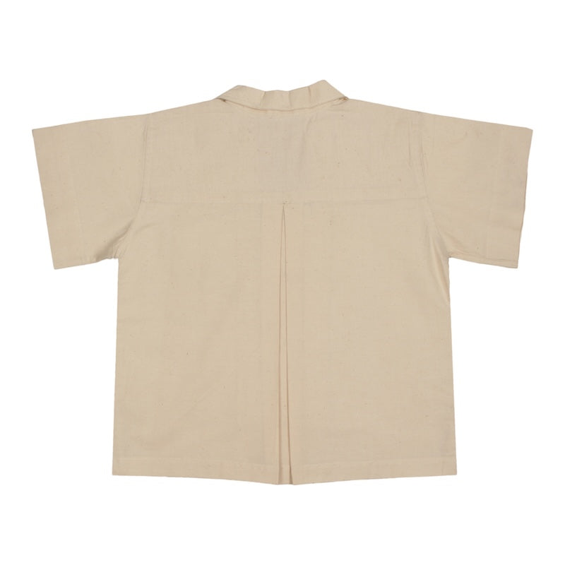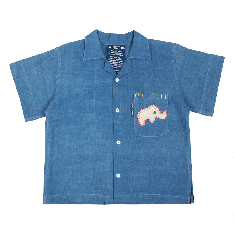 The Camp Collared Shirt is a mini version of the Camp Collared Shirt. Fits loose with inverted pleats to give more freedom of movement along with our signature elephant patch on the chest pocket and embroidered with blanket stitching on the elephant patch and chest pocket.