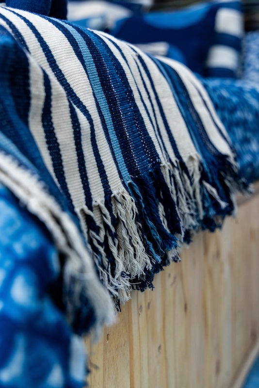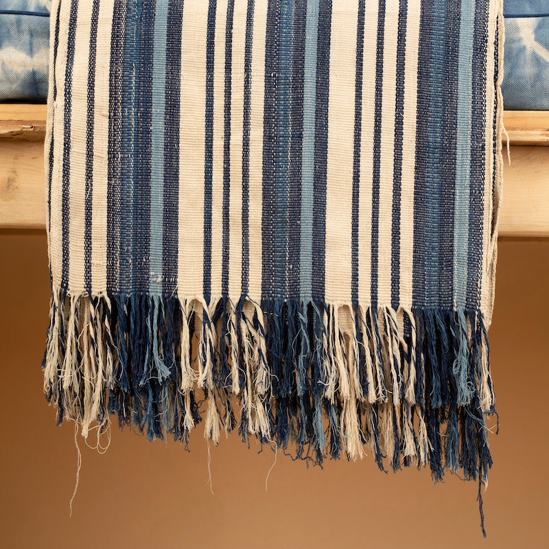Wrap yourself in comfort with our cozy throw, meticulously hand-twisted at the edges for added elegance. Crafted from 100% cotton yarns dyed at Kofar Mata and handwoven in Maitsidau village, this throw is a luxurious addition to your bed or couch.