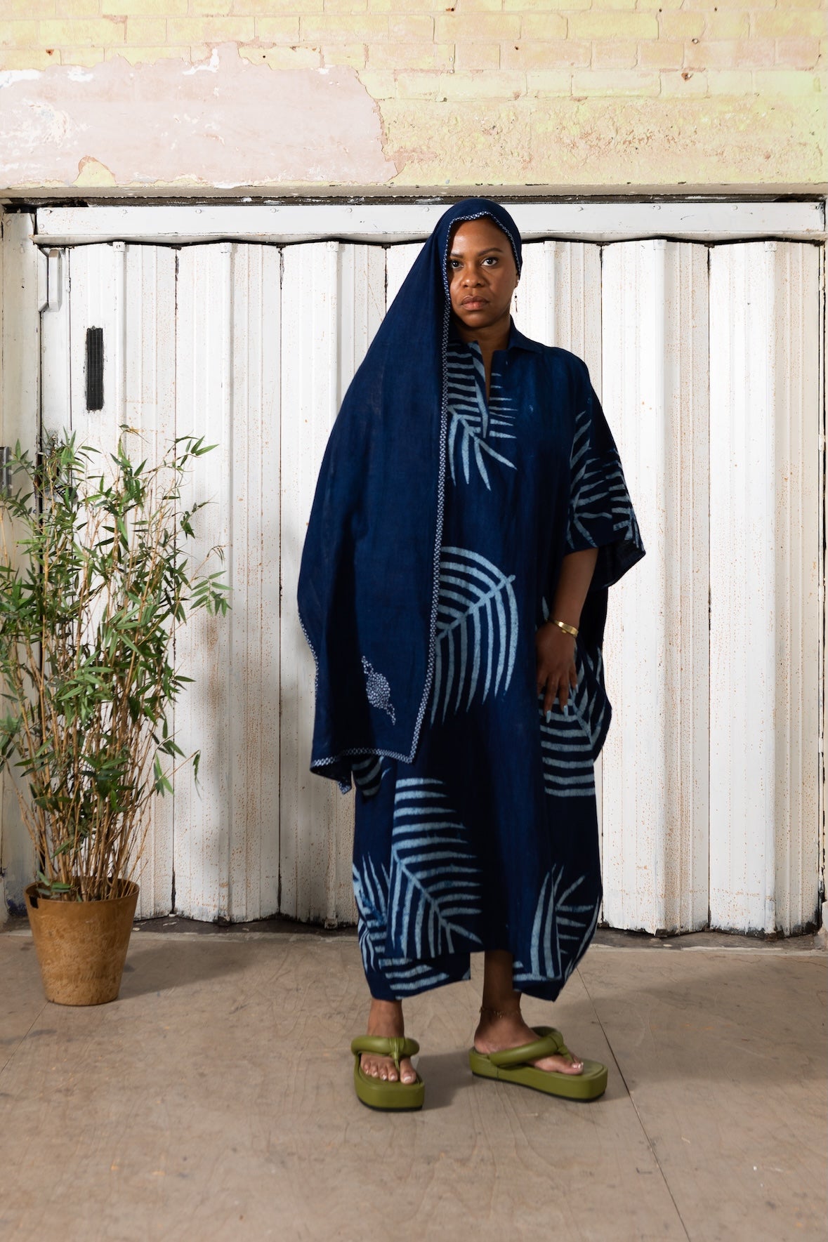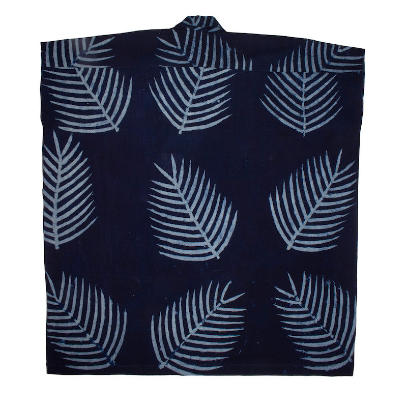 Made with 100% cotton from Funtua, Katsina. Hand dyed in the centuries old Kofar Mata dye pits in Kano, Nigeria. The Palm Print is a carefully stenciled resist, formed using cassava paste and dyed once or twice, depending on the desired colour variation, by the skilled hands of Kofar Mata’s master dyers. The cassava must dry completely before the fabric is submerged into the dye vats, a process that spans 3–4 days.