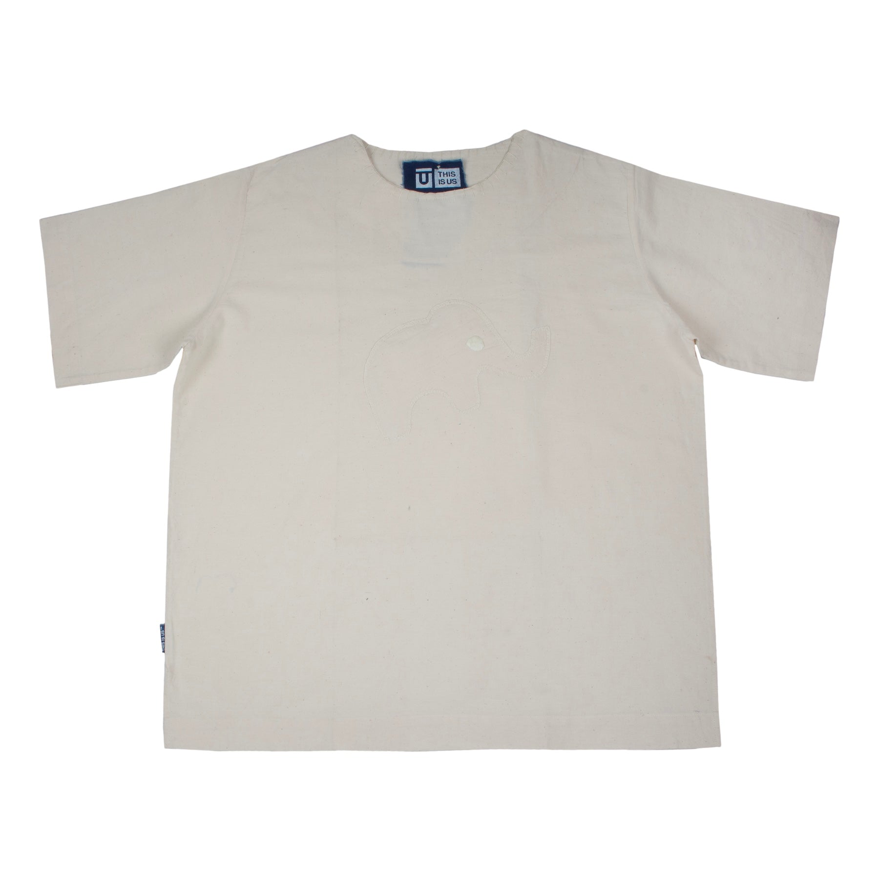 Our classic tee design in ivory with the Funtuanimals Elephant patch stitched on.