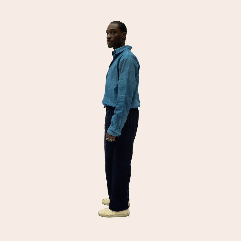Indigo dyed in the centuries old Kofar mata dye pits in Kano, Nigeria on locally sourced Funtua cotton.