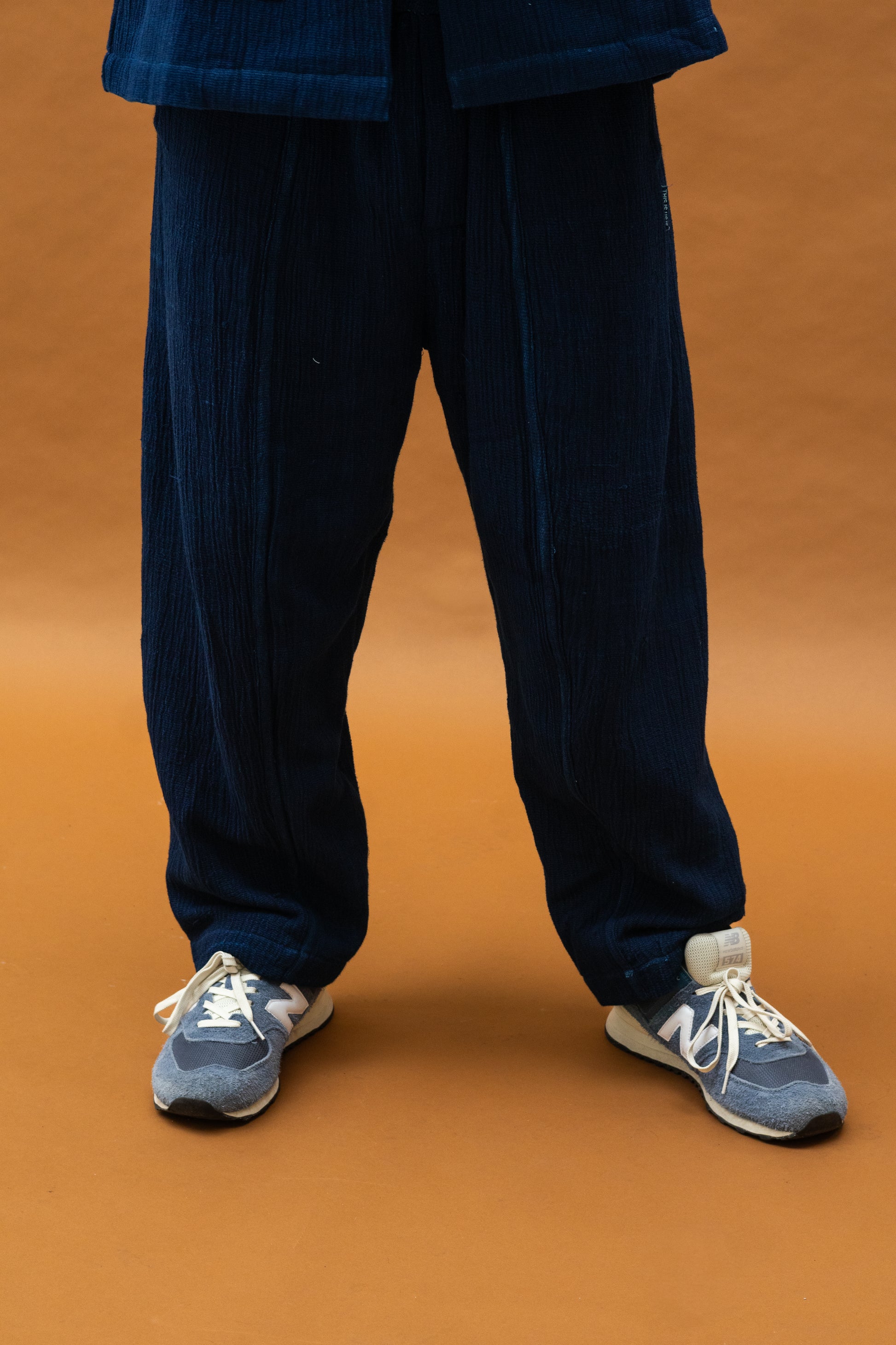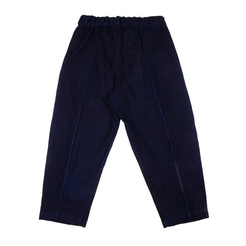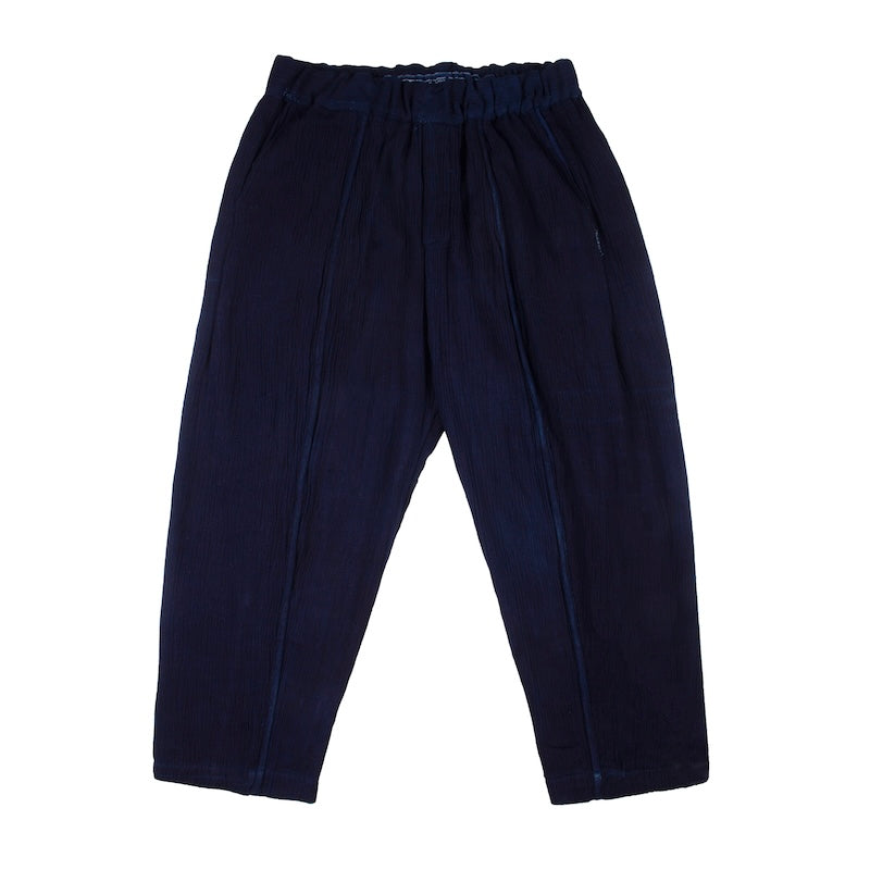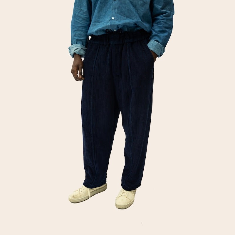 The woven Shokoto is an elevated version of our classic shokoto pants. Crafted with hand woven indigo dyed fabric, these pants have the look and feel of comfort and luxury.