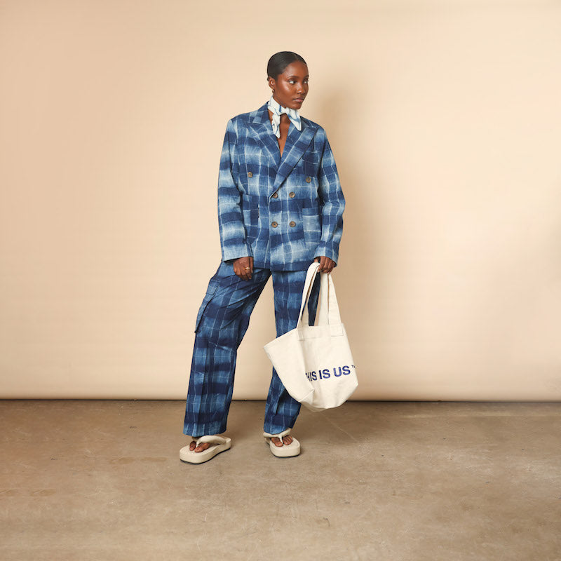 Indigo dyed at the ancient Kofar Mata dye pits in Kano, Nigeria on locally sourced Funtua cotton.