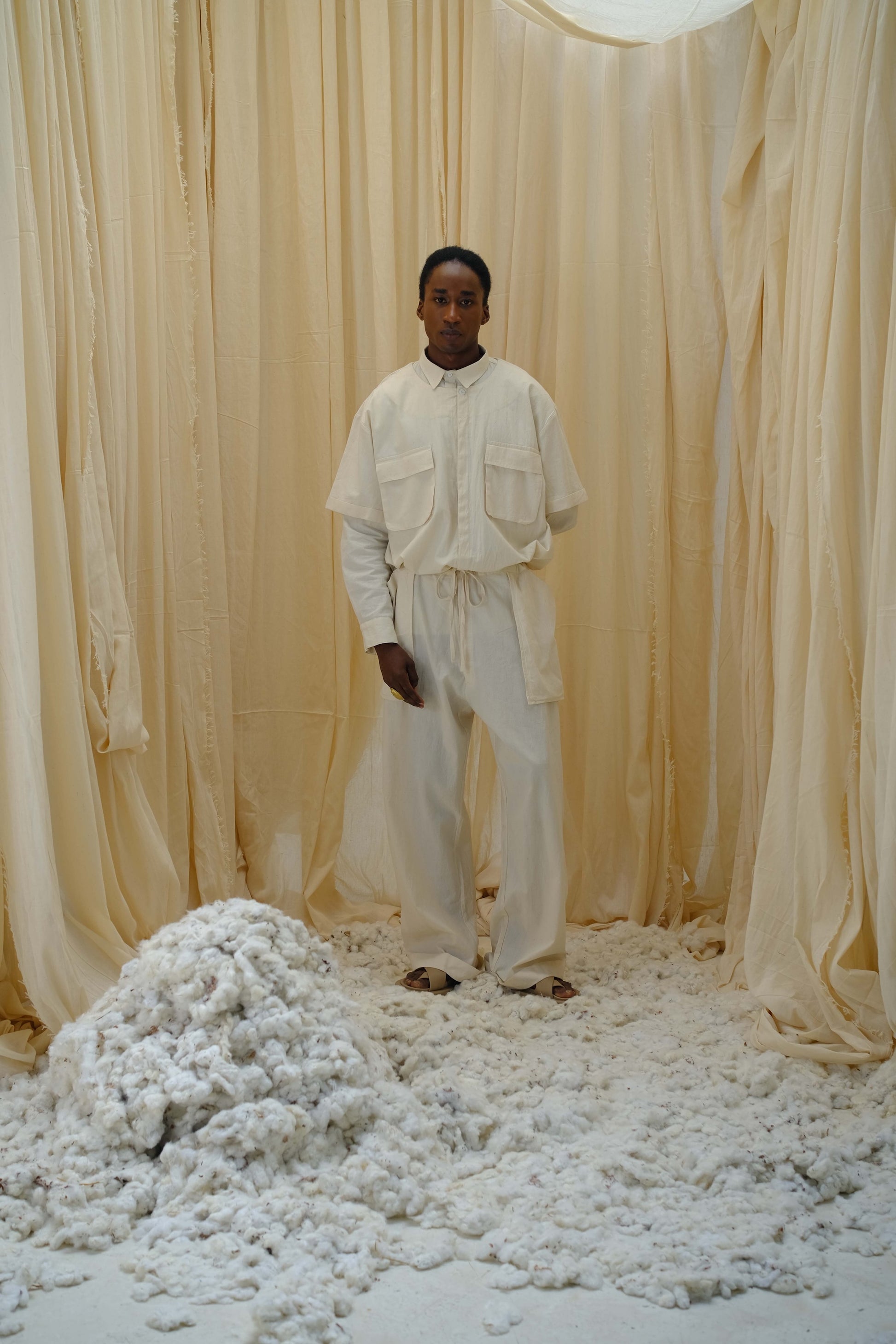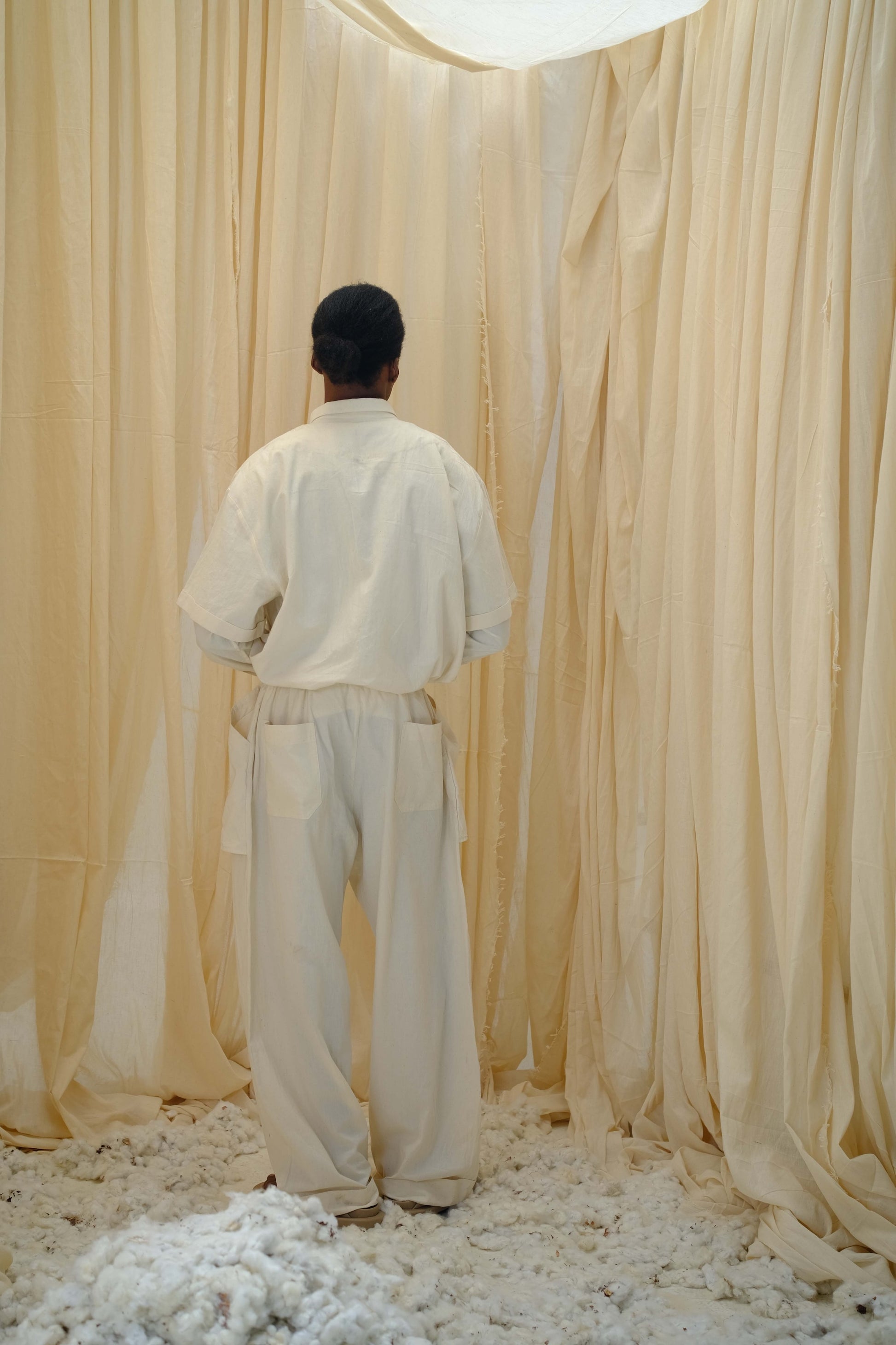 An update to our Uniform Wear Jumpsuit with a slightly longer sleeve a longer length and fold up hem function. It’s the perfect work wear for creatives. With its drawstring waist it can be as cinched or as free as you want.