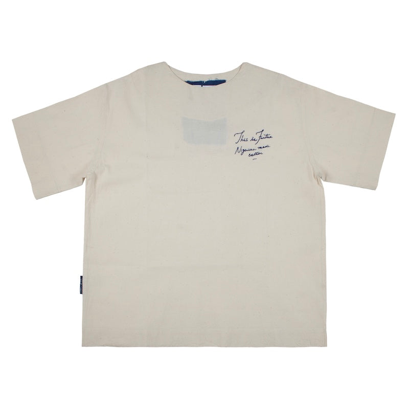 Our signature boxy t-shirt in ivory and hausa states print dyed Funtua cotton.