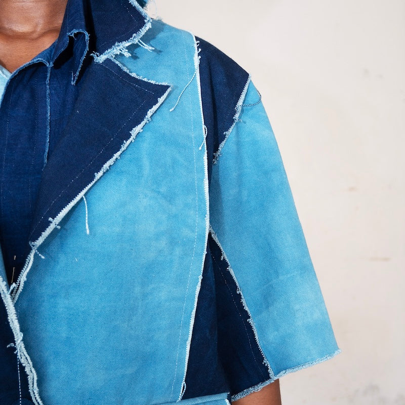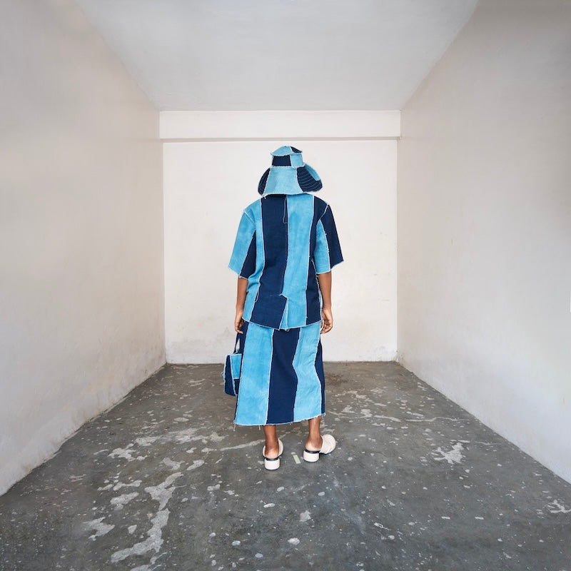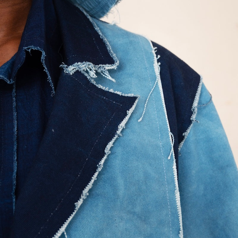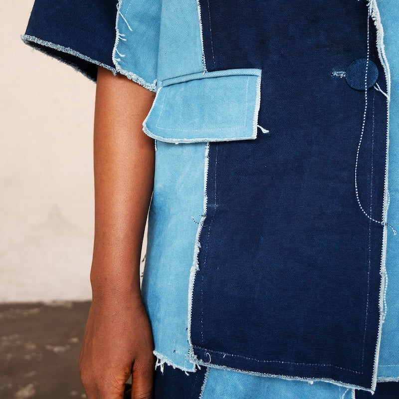 Hand dyed using ancient heritage techniques by master dyers at the centuries old Kofar Mata dye pits in Kano, Nigeria.