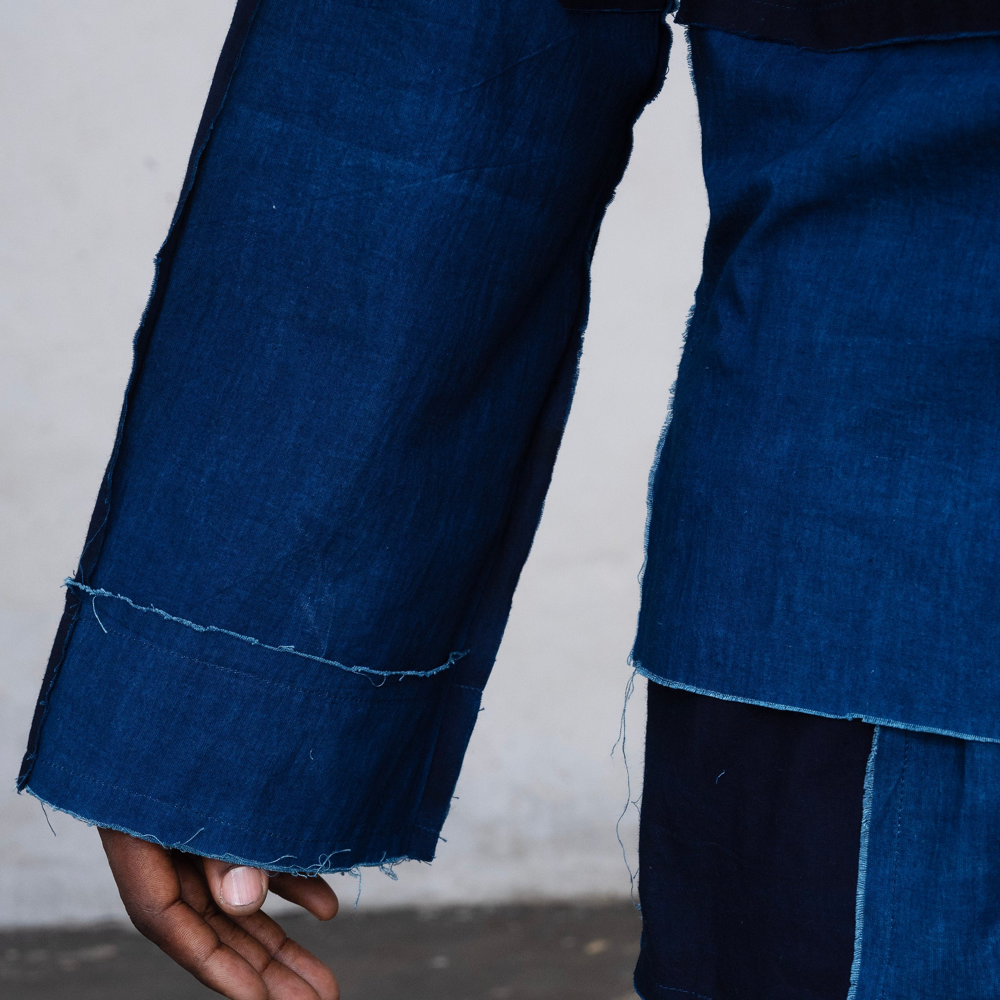 Hand dyed using ancient heritage techniques by master dyers at the centuries old Kofar Mata dye pits in Kano, Nigeria.